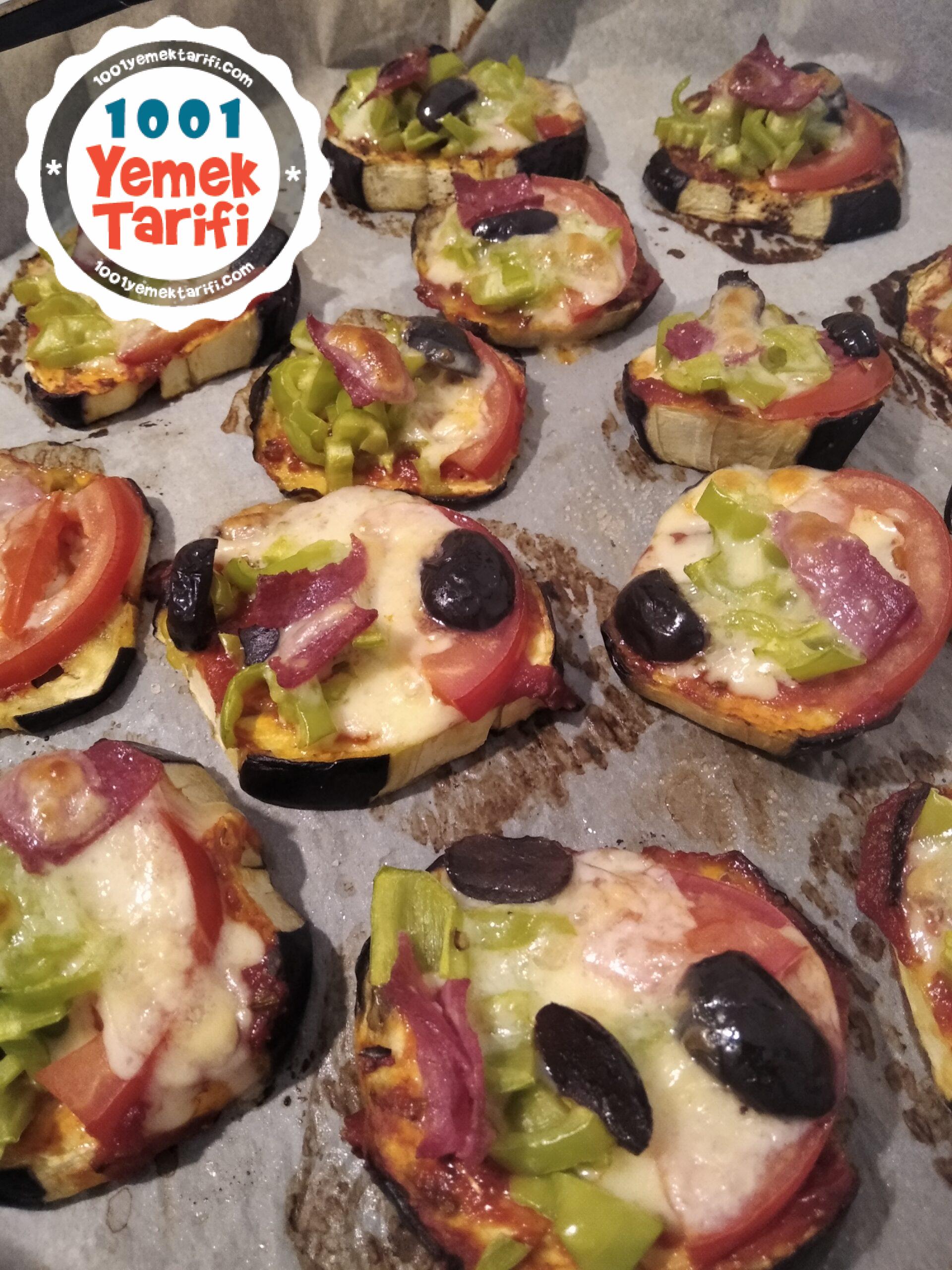 Pizza hamur işi tarifleri arasında çok sevilir. Hamur yerine bazı sebzelerden pizza tabanı yaparak daha hafif bir pizza yapmak mümkündür. Bostan patlıcanlarından tabanını hazırladığım pizza tarifimde salçalı sos ve istediğiniz malzemelerle gayet sağlıklı bir sebze pizzası yapmak mümkün olur. Yapım aşamalarının çok kolay olduğu patlıcan tabanlı pizza tarifinde öncellikle doğranmış patlıcanlar zeytinyağı sürülerek fırına verilir. Fırında yumuşadıktan sonra salçalı sos ve diğer malzemelerinin ilave edilmesiyle kolay bir şekilde patlıcan tabanlı pizza hazırlanmış olur. Aperatif tarif olarak yapabileceğinin patlıcan tabanlı pizzayı deneyecek olanlara şimdiden afiyet olsun.