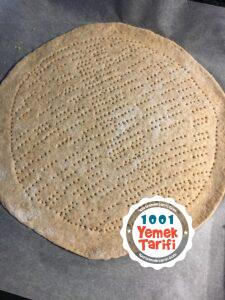 - Açtığımız hamurların kenarları hariç ortasının her yerine çatalla delikler acıyoruz (resimden faydalanabilirsiniz).