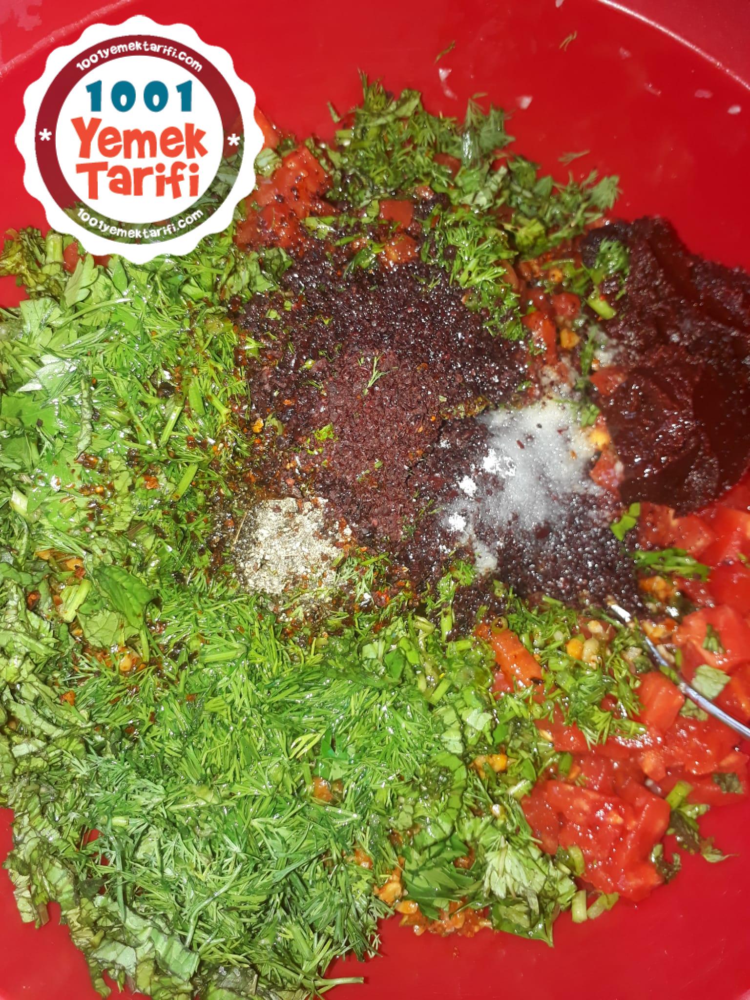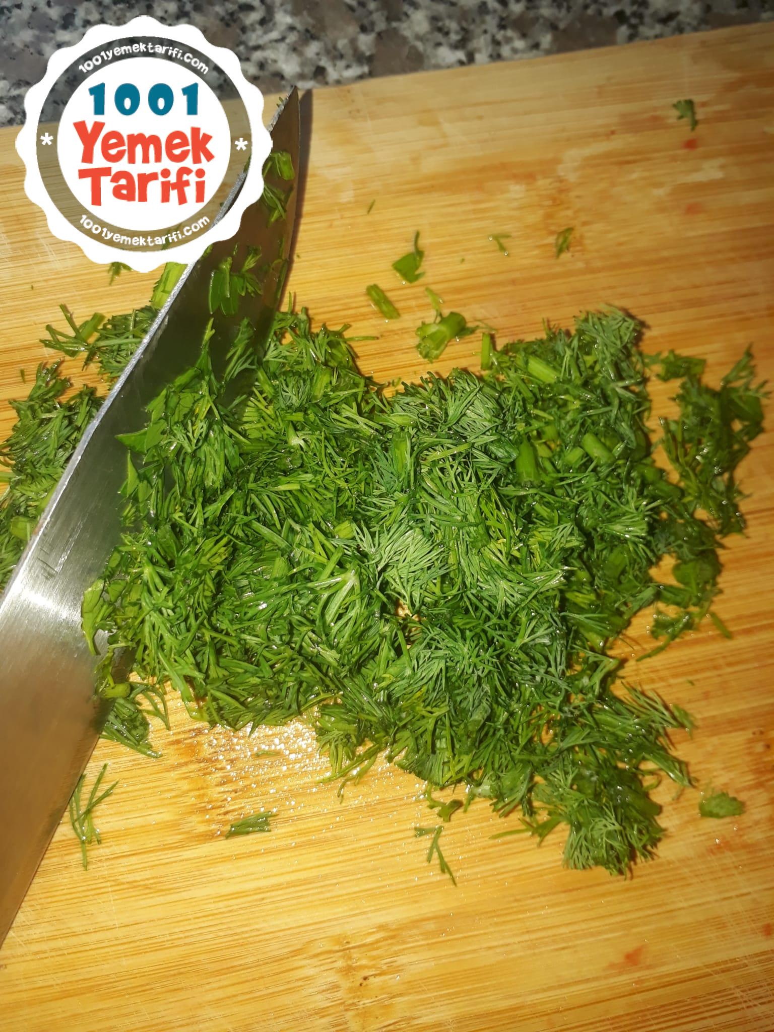 - yeşillikleri de aynı şeklide doğrayıp iç harca ekleyelim
