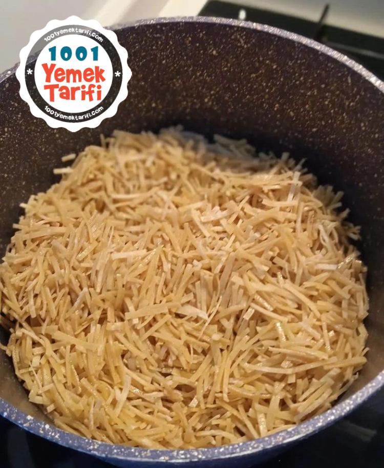 - Erişteleri pilav yapar gibi önce sıvı yağda biraz kavurun.