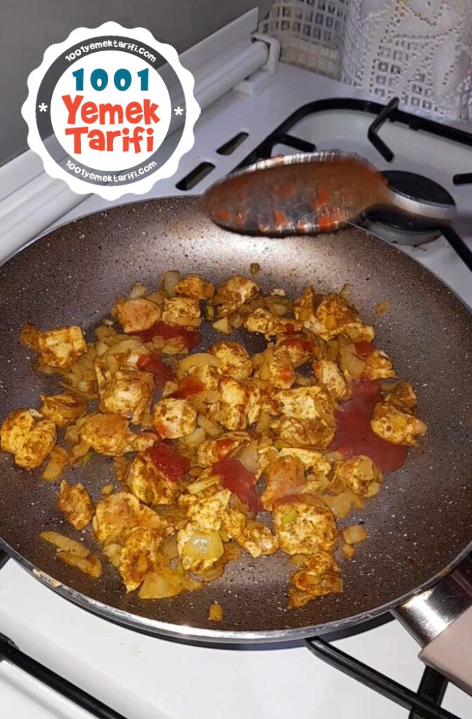 - Azıcık suyunu çekince kenara aldığımız tavukları içerisine ekliyoruz.