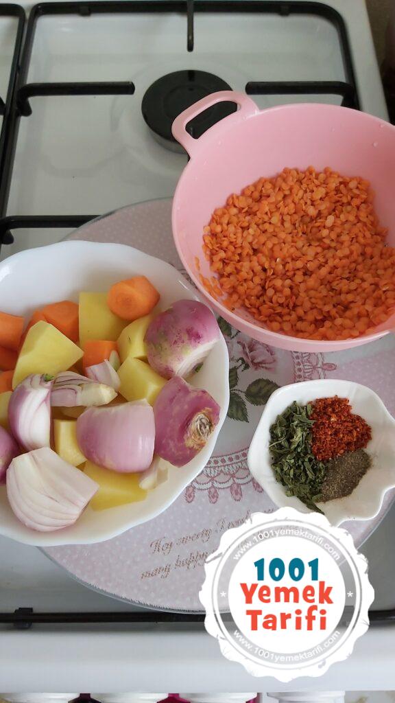 - Malzemelerin hepsini soyup doğrayıp yıkayıp tencere veya düdüklüye alıyoruz.