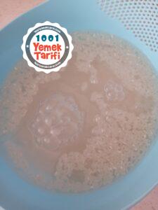 - Öncelikle pirincimizin üstünden aşacak kadar su ve 1 tatlı kaşığı kadar tuz koyup ıslatalım. Bu şekilde en az 1 saat bekletelim.