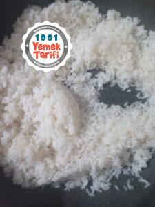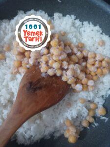 - Üzerine yıkayıp süzdüğümüz pirinci ekleyelim ve güzelce kavuralım.