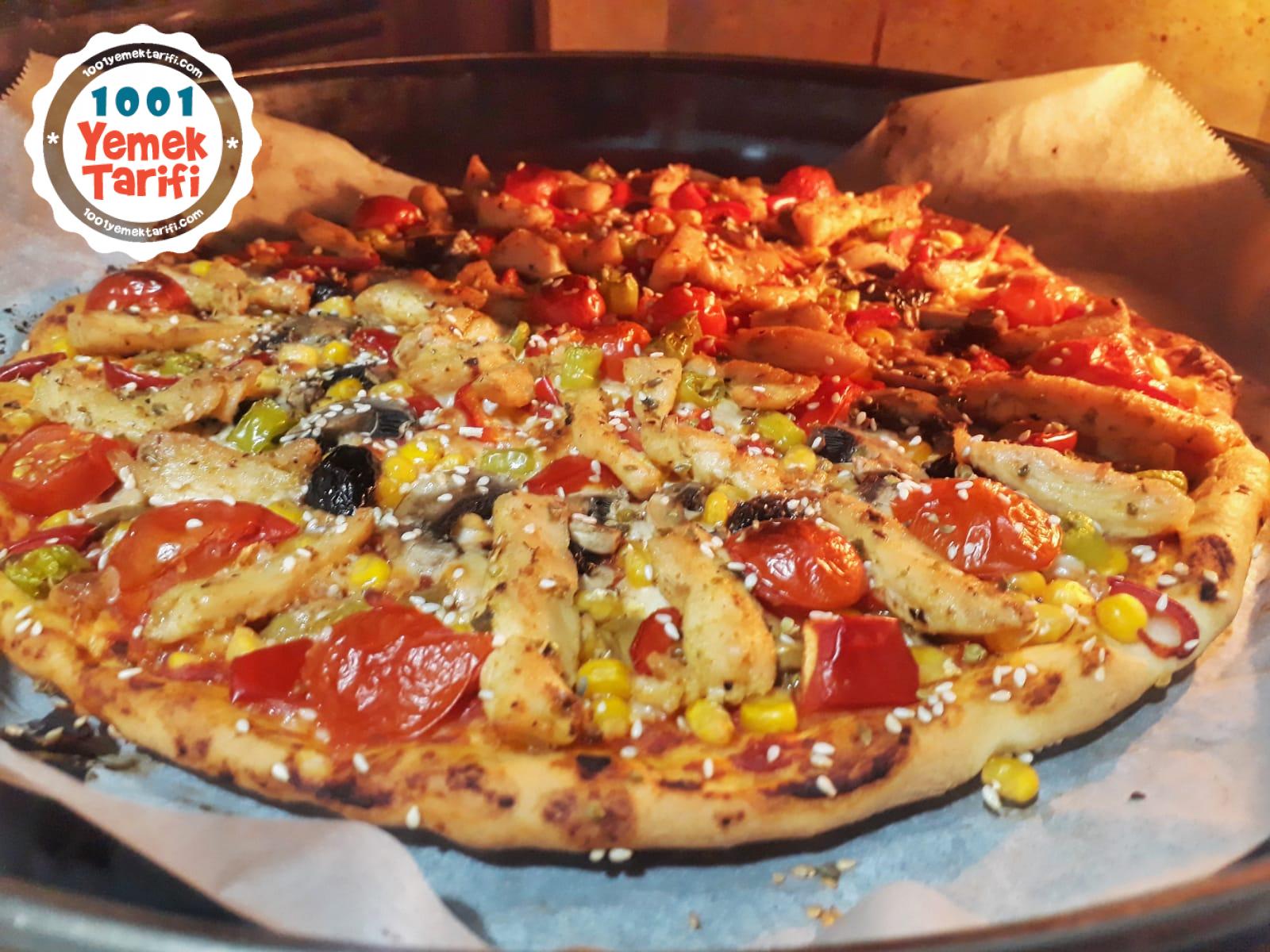 Pizza en sevdiğim fast food arasında 2. sırada yerini alır benim için vazgeçilmezdir. Evde çeşit çeşit yapmayı çok severim hazır pizzalarda malzeme başına fiyat artırıyorlar çok saçma geliyor. Evde kendim yapıyorum hem sağlıklı hem de bol malzemos oluyor 🙂 Tavuklu dedim ama tavuk sevmeyenler için bir tepside iki çeşit pizza yapabilirsiniz. Tepsinin yarısı tavuklu diğer yarısı sucuklu veya sevdiğiniz başka hangi malzeme varsa onu kullanabilirsiniz. Yani kısaca üzerindeki malzemeler tavuk hariç sevdiğiniz ne varsa olur. Hadi hep birlikte bu güzel pizzanın yapımına geçelim 🤗