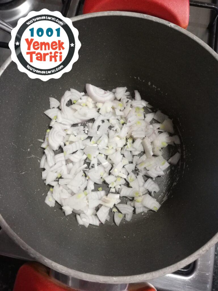 • Soğanlarımızı küçük küçük yemeklik dogruyoruz ve tenceremize alalım.