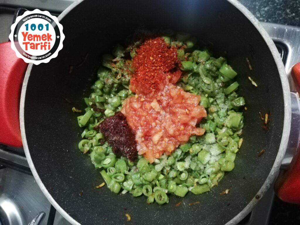 • Üzerine domatesleri iyice küçük küçük dogradıgımız domateslerimizi Salça mızı tuzunu ve biberin atıp 5 dk daha kavuralım.