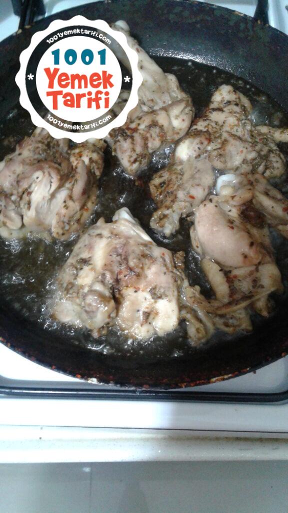 • Lokum kıvamında pişirdiğimiz tavuklarımızı tavamızda arkalı önlü kızartıyoruz.