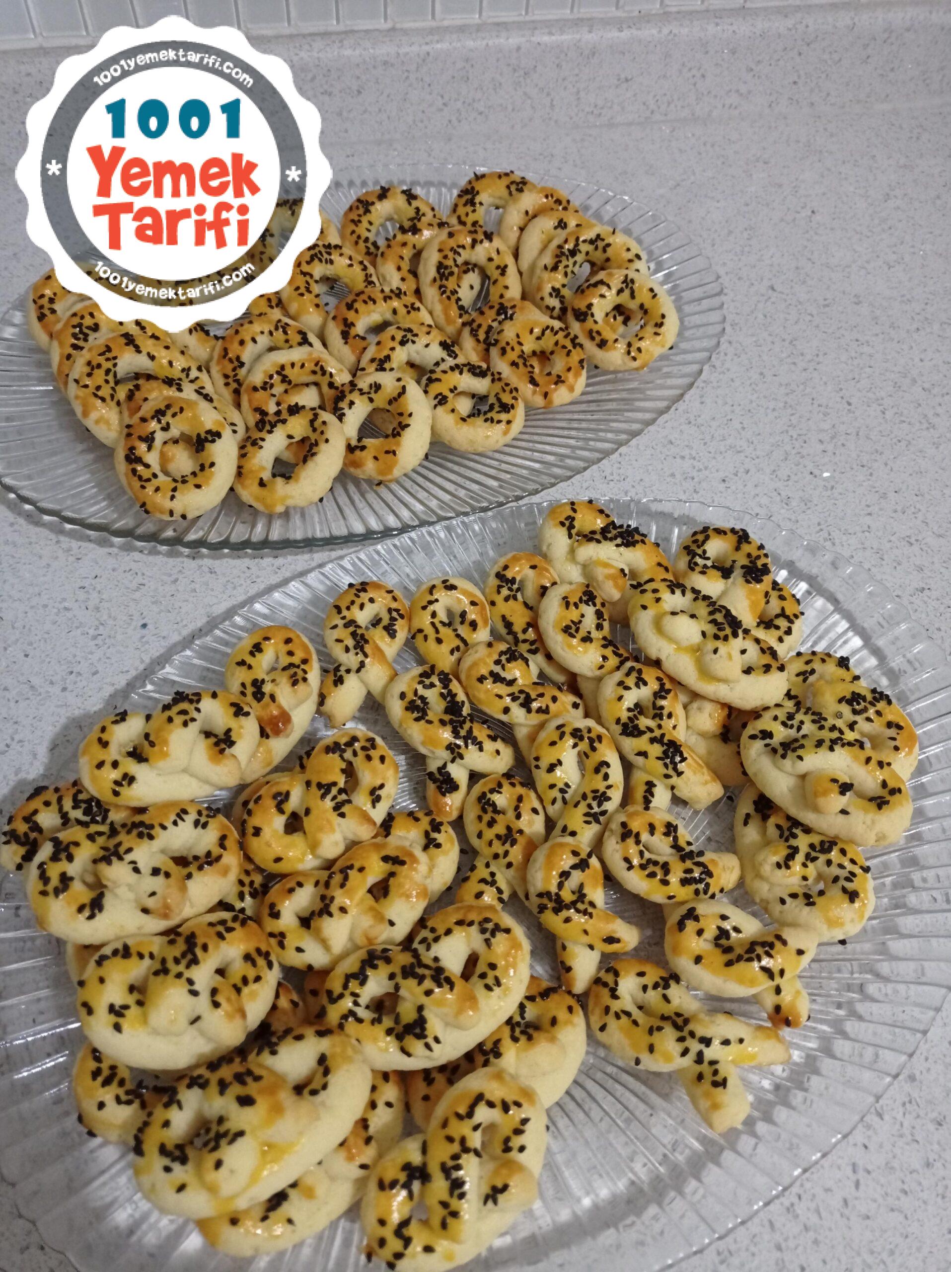 - 2 yumurta (birinin tamamı içine, diğerinin akı da içine, sarısı kurabiyenin üstüne sürülecek)