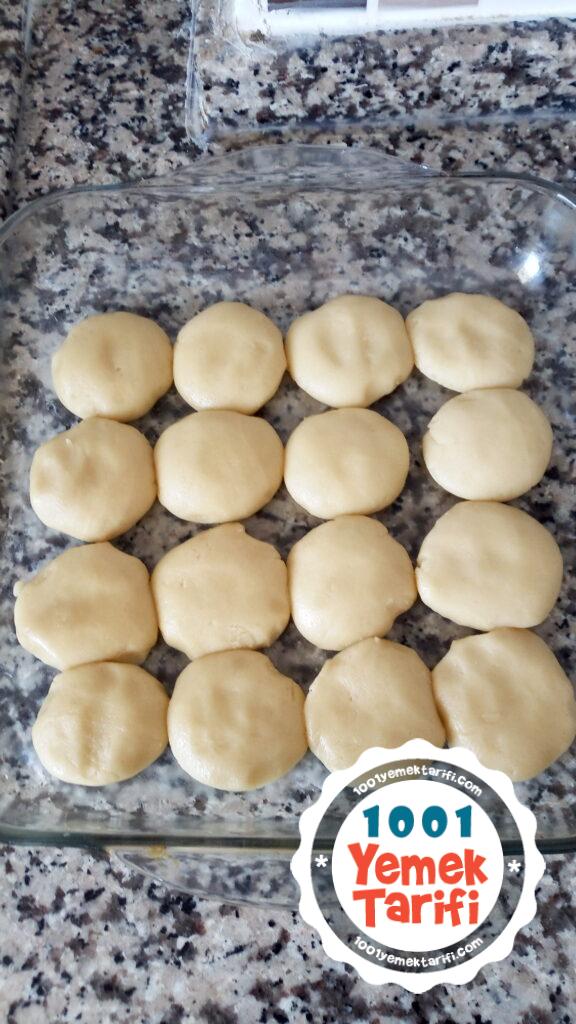 - Karıştırıp toparlıyoruz şekil verip tepsiye diziyoruz.
