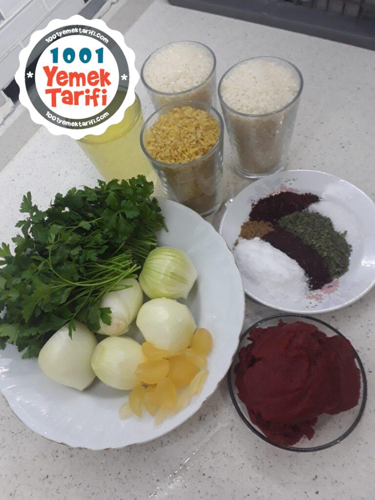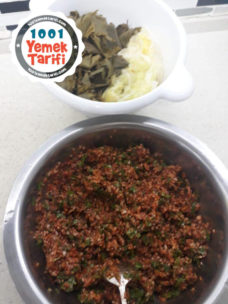 - Çektikten sonra yıkadığımız pirinç ve bulgurun üzerine ekleyip 1 Demet maydonozu üzerine ilave edip karıştırıp sarmaya başlayalım.