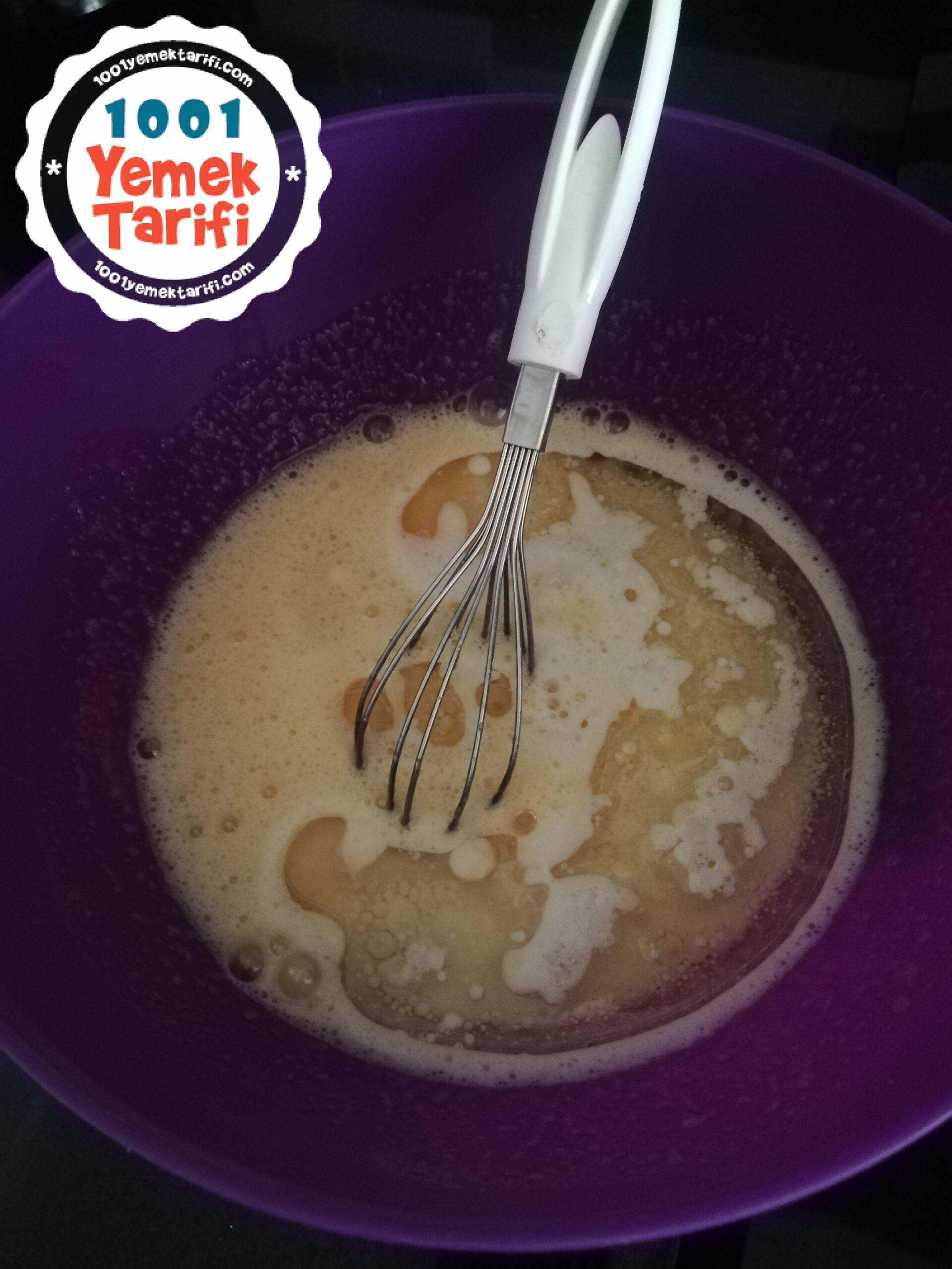 - Ardından sıvıyağ ve sütü de ekleyip karıştıralım kabartma tozu ve vanilyayı ekleyip karıştıralım