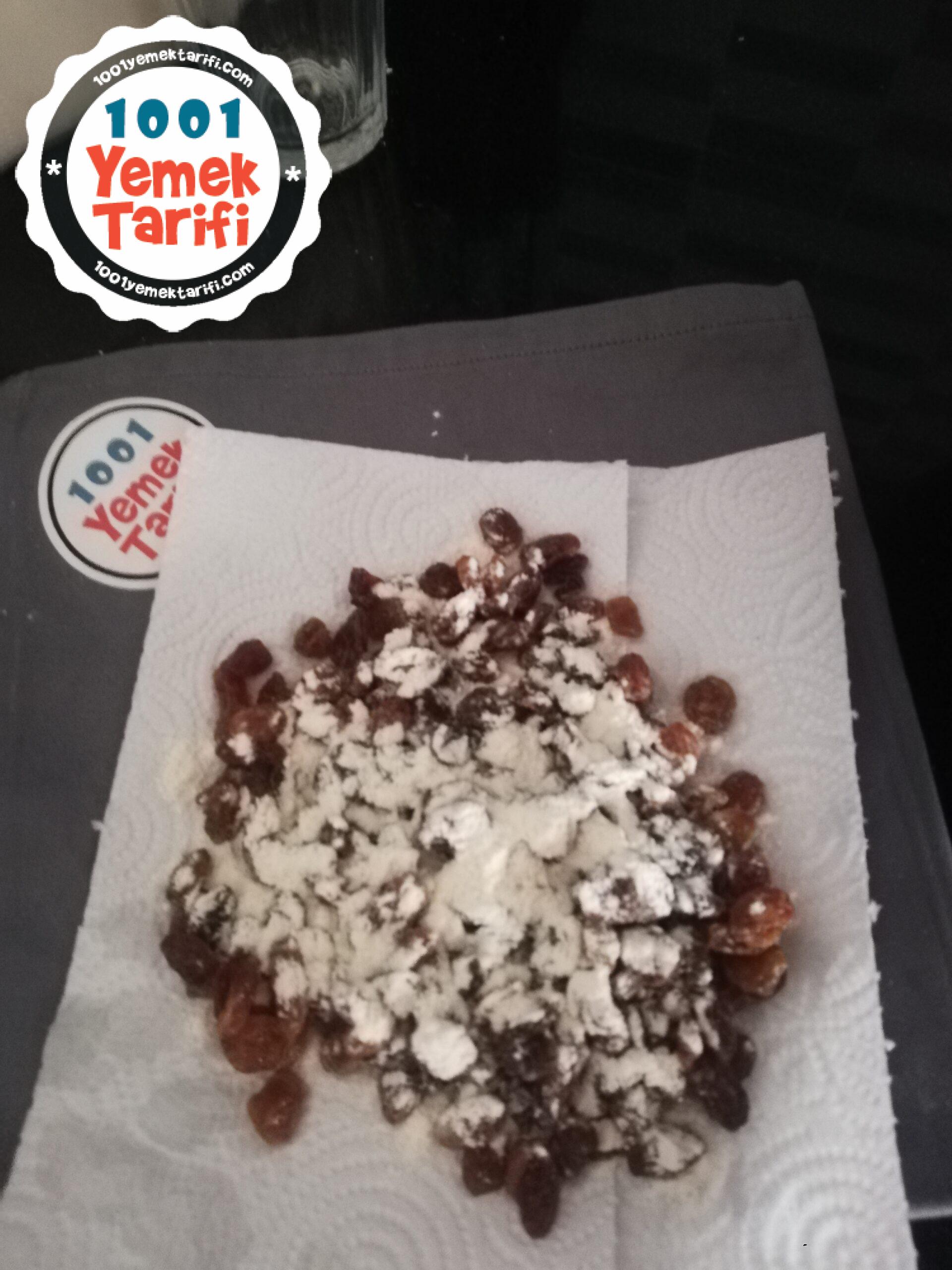 - Üzümleri yıkayıp süzelim ardından bir yemek kaşığı una bulayıp ceviz yada fındık içi ile harcımıza ilave edelim