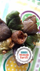 - Patlıcanları baş kısmından değil de arka kısmından küçük bi şekilde tamamen koparmadan kesiyoruz. İcini oyacak yada bıçak yardımıyla çıkarıyoruz.