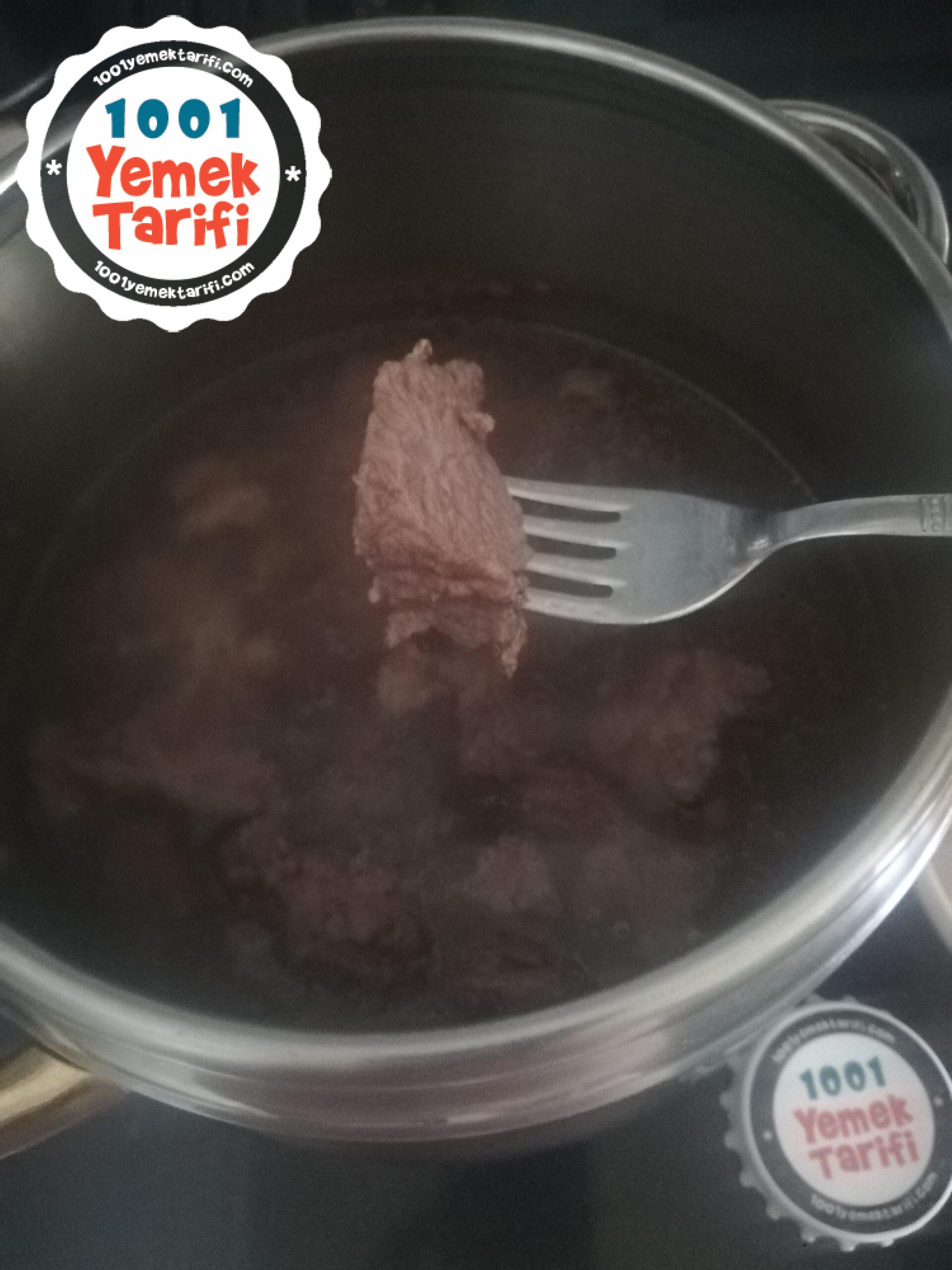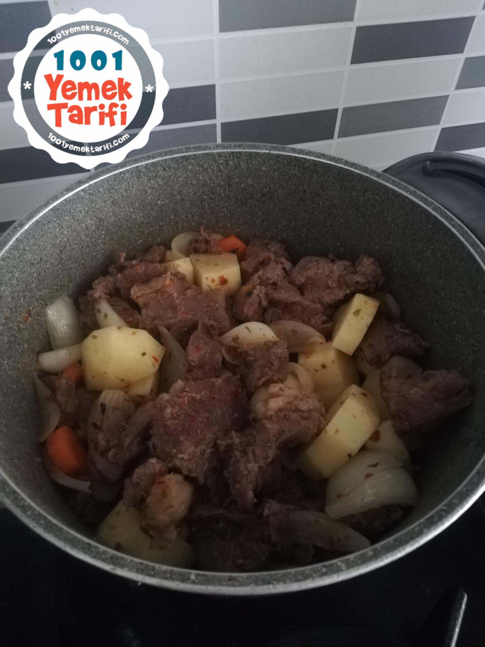 - Eti haşladığımız suyu da tencereye ilave edip havuç ve patates pişene kadar ocakta tutalım.