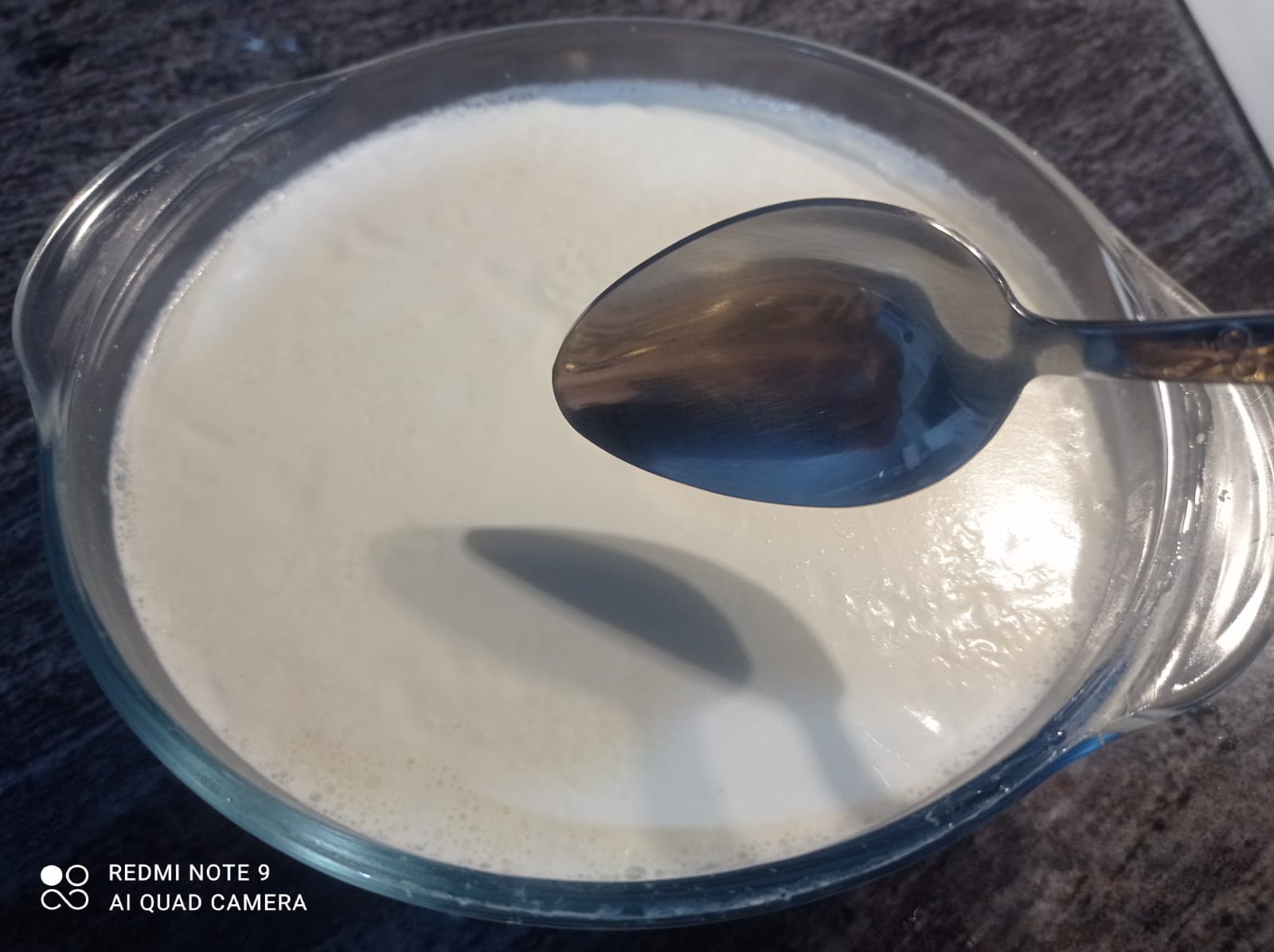 - Güzel ve kıvamlı bi yoğurt istiyorsak süt ılıdığında serçe parmağınızı deydirin ve 7 ye kadar sayın parmağınız yanmadıysa ama sütünüz sıcak ise mayalıya bilirsiniz artık yoğurt mayalıcağımız kabın içerisine mayalık yoğurdumuzu koyalım ve bi tutam tuz koyalım