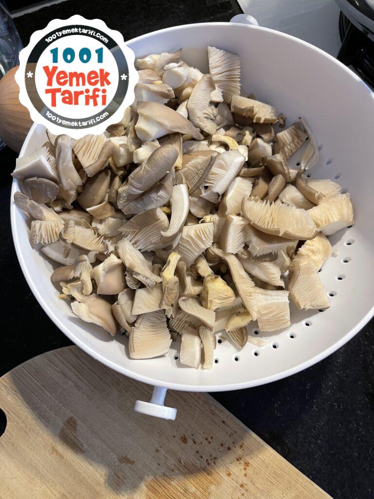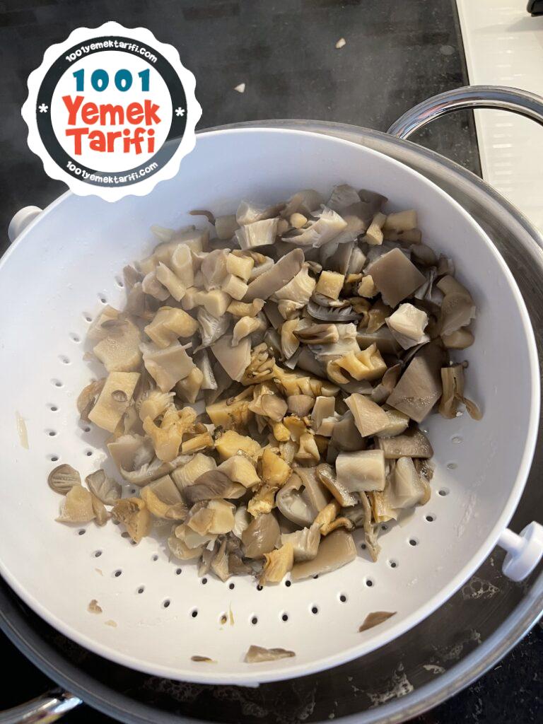 - Mantarları doğrayın ve bir tencerede kaynar suda haşlamaya başlayın.
