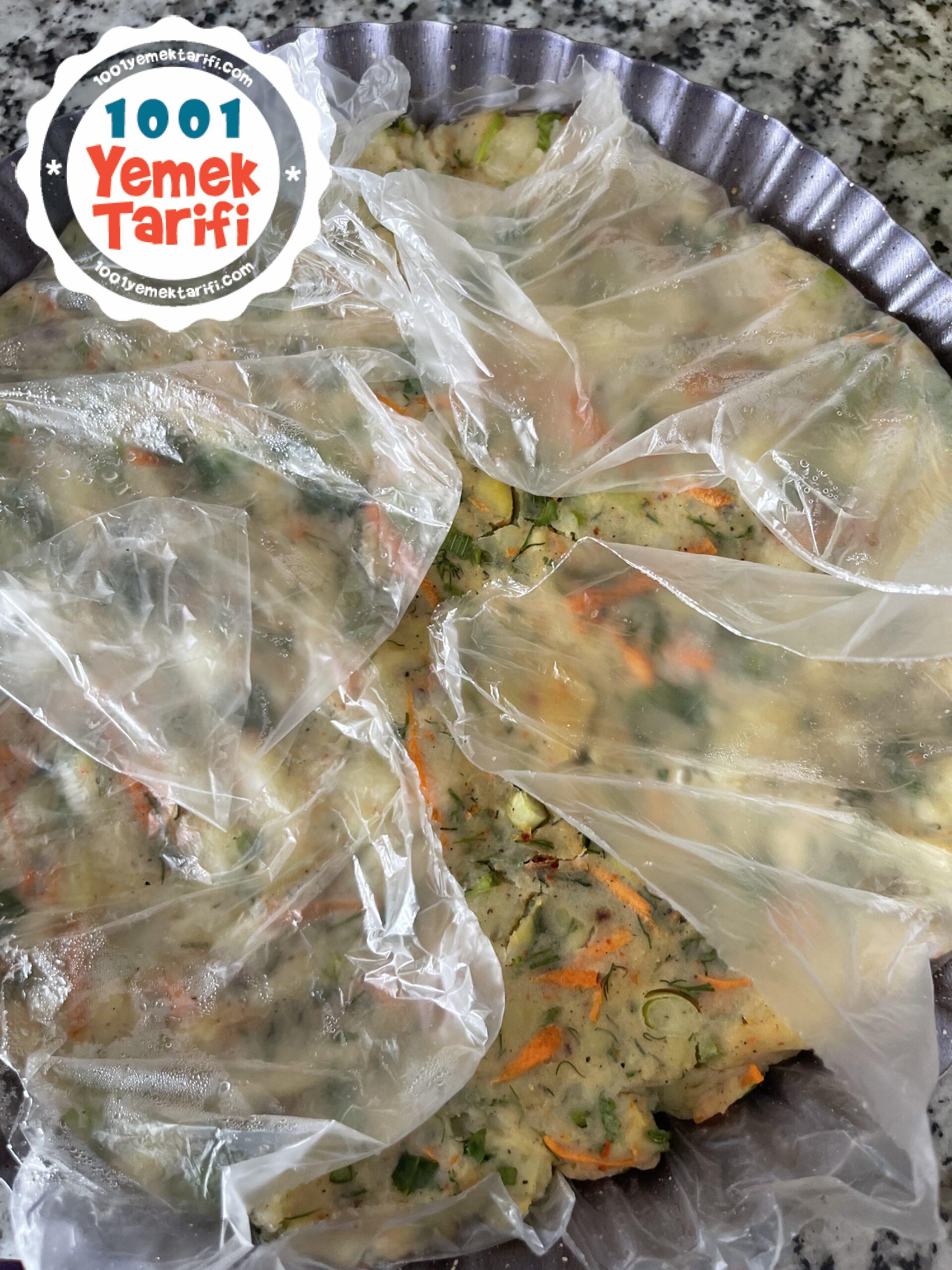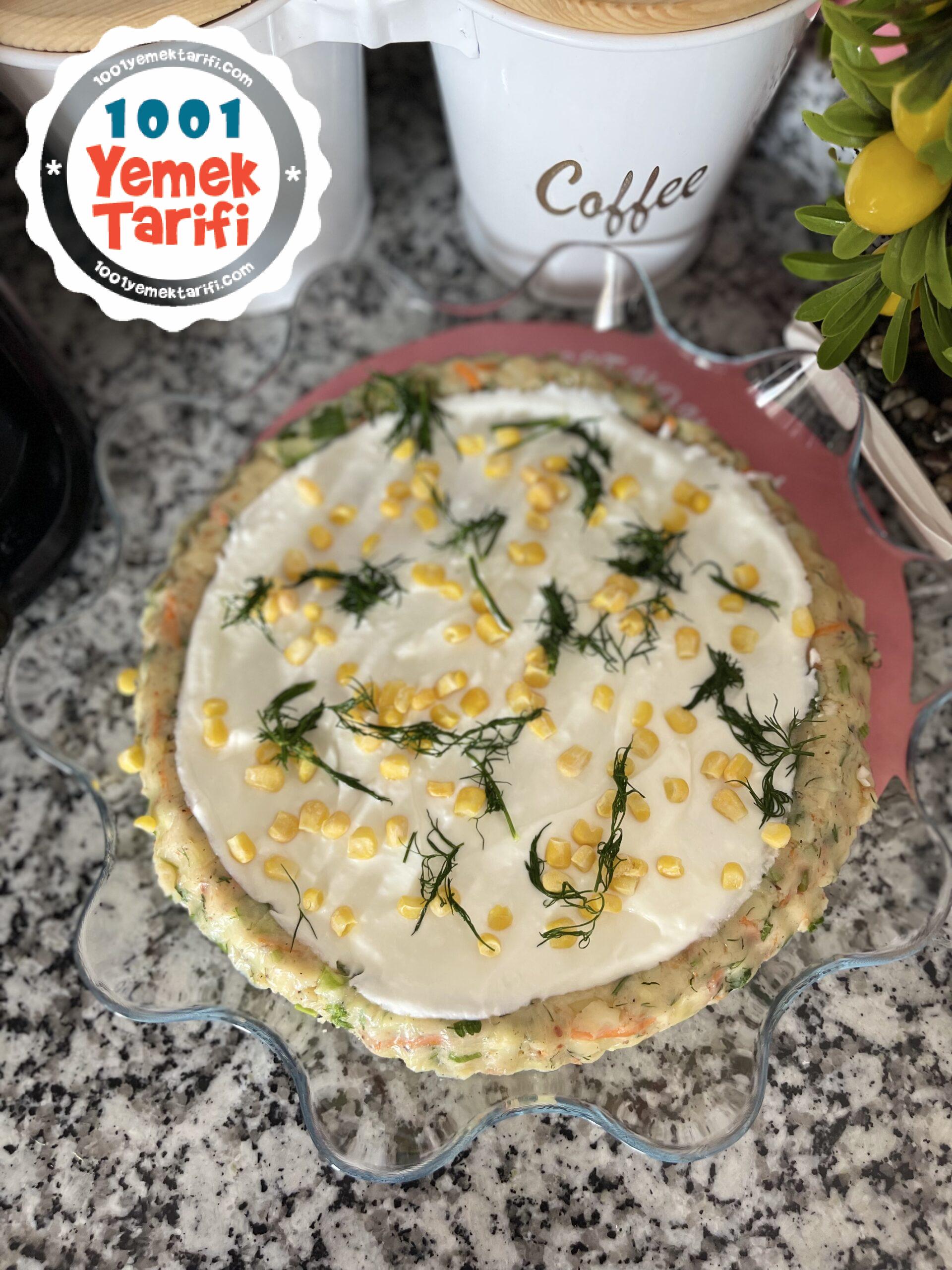 - Strec film serdigimiz tart kalibimiza salatamizi dokuyoruz bir gece buzdolabında beklettikten sonra kalibimizi ters çevirerek servis tabagimiza alıyoruz