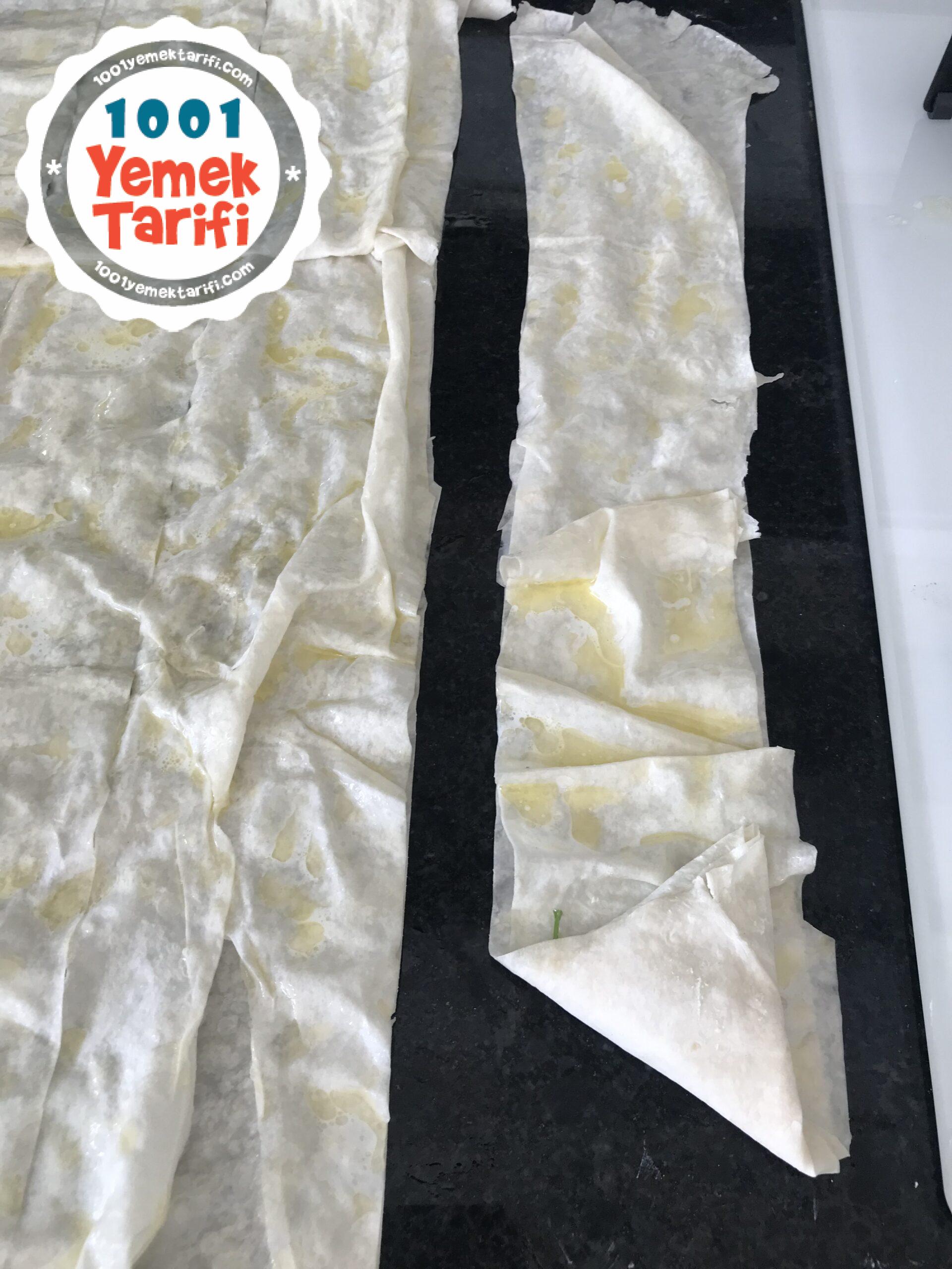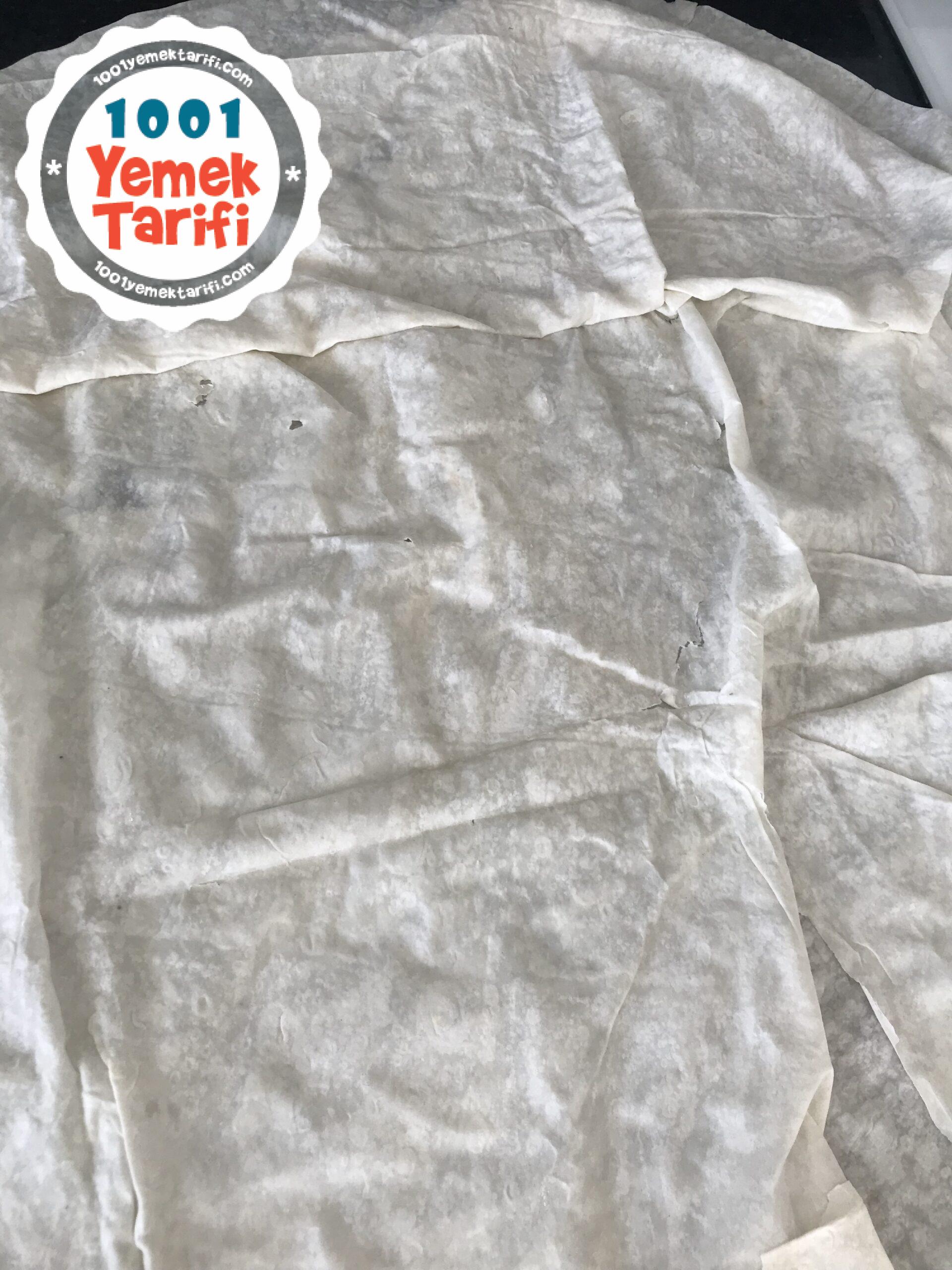 - 2 adet yufka üst üste gelecek şekilde tezgaha serelim.