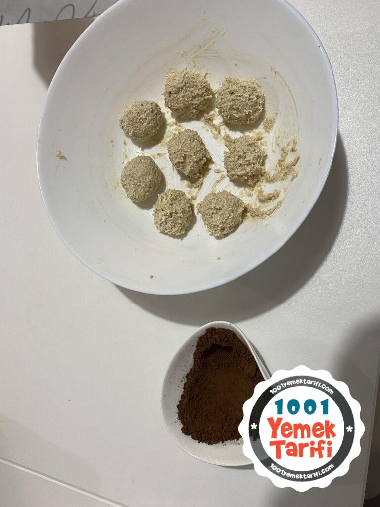 - Dolaptan çıkardığımız karışımı elde yuvarlayarak ceviz büyüklüğünde toplar elde edelim.