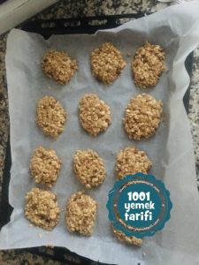 - Tepsimize yağlı kağıt serip bir yemek kaşığı ile yuvarlak şekil vererek tepsimize aralıklarla yerleştiriyoruz.