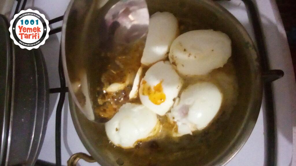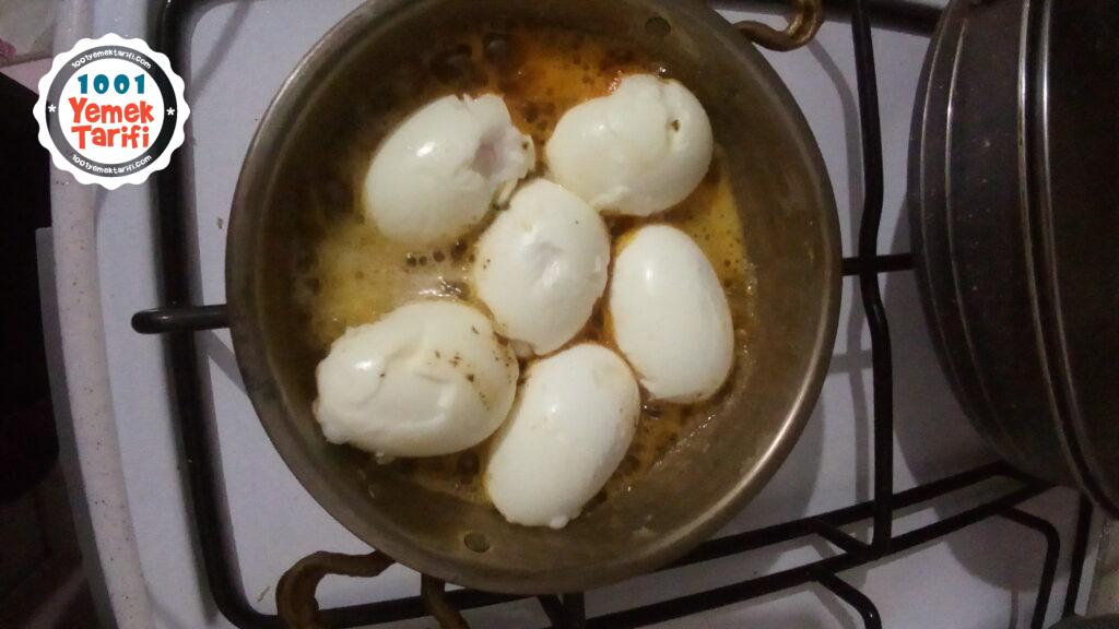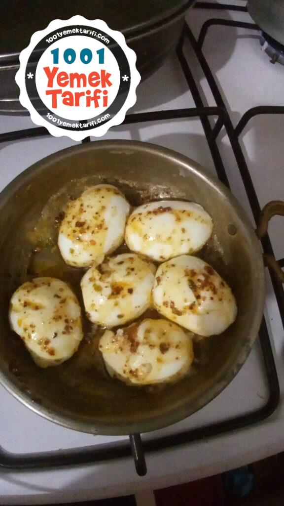 - Bu işlemi tüm yumurtaların üstü tereyağlı sos ile kaplanıncaya kadar devam edelim.