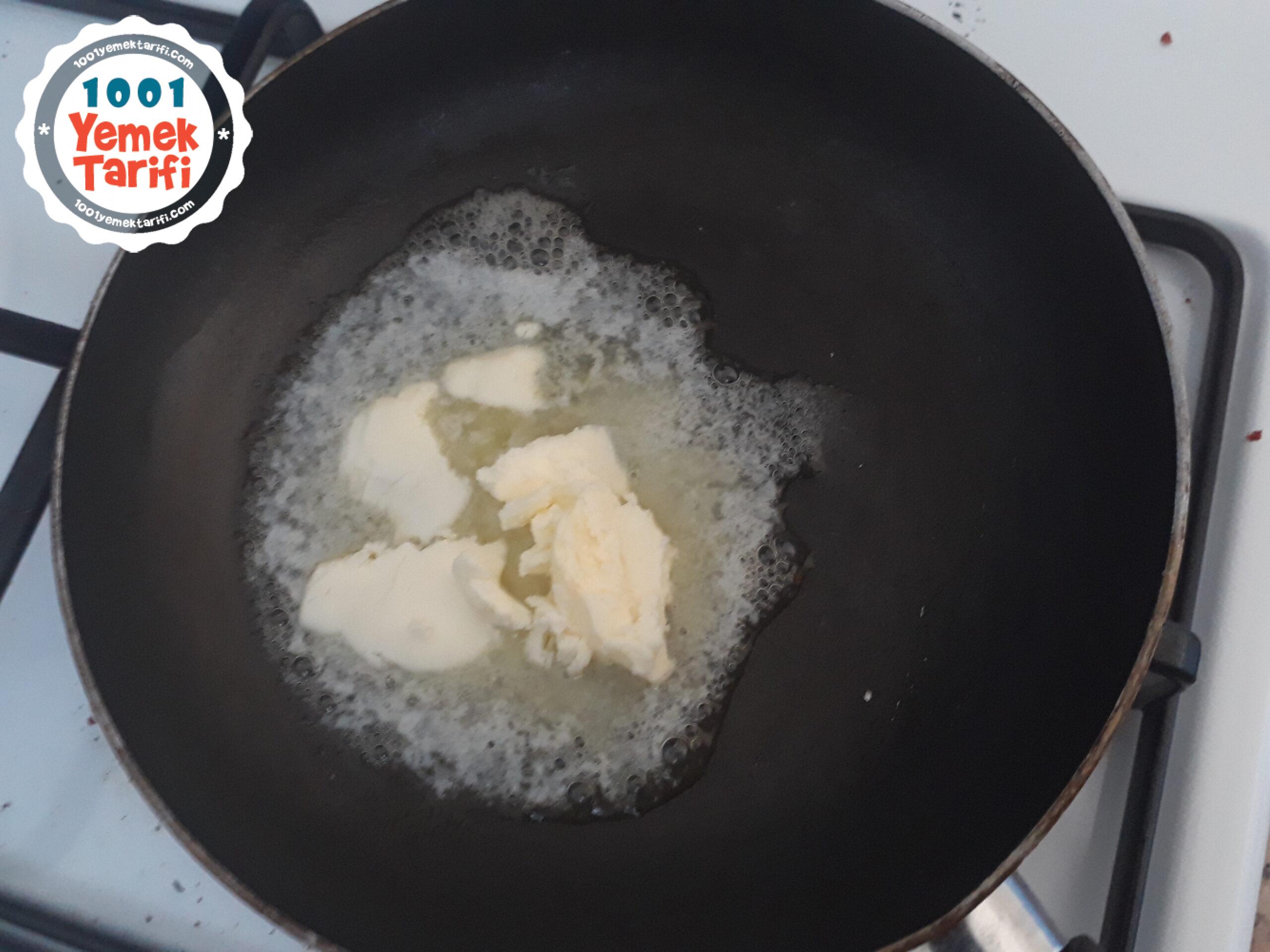 - Tavayi ocaga alip içine 2 tatlı kaşığı tereyağı eritiyoruz.