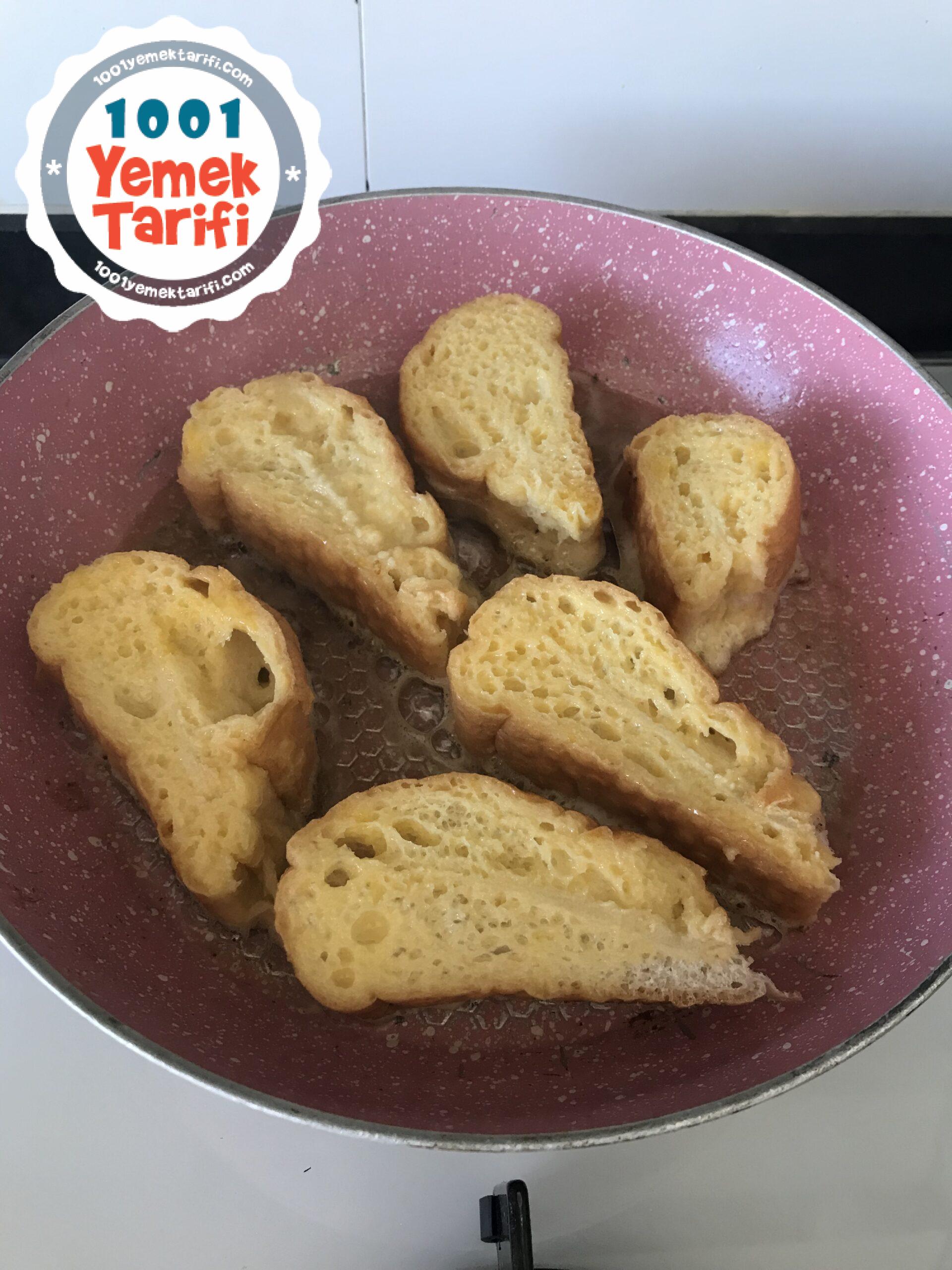 - Bayat ekmeği dilimleyin arkalı önlü olarak yumurtalı karışıma bulanır.