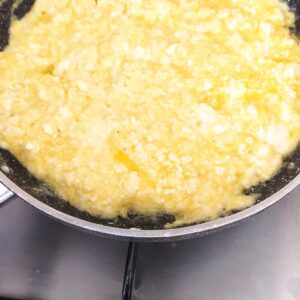 - Peynir hafif erimeye başlayınca yumurtaları üzerine kırıp karıştırarak pişiriyoruz.
