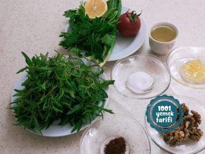 - Zahterleri dallarından ayıklayıp acı suyu almak için tuzla 2-3 dakika ovduktan sonra iyice yıkayıp bir karıştırma kabına alıyoruz.
