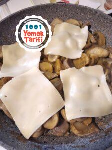 - Sonra üzerine iyice yıkanmış ve suyu akmış mantarları ilave edelim