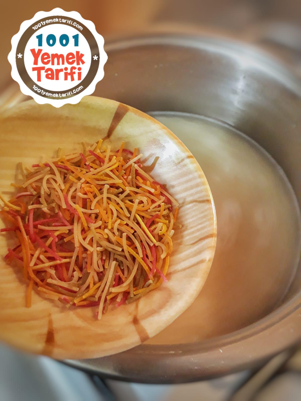 - Kaynayınca tel şehriye ve havucu ilave edip kaynatın.