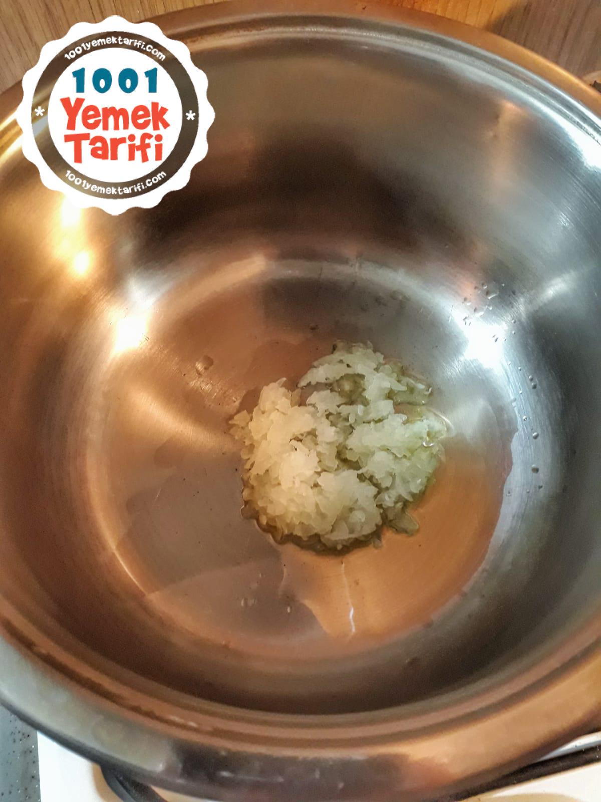 - Tencereye yağ koyup rendelenmiş soğanı kavurun.