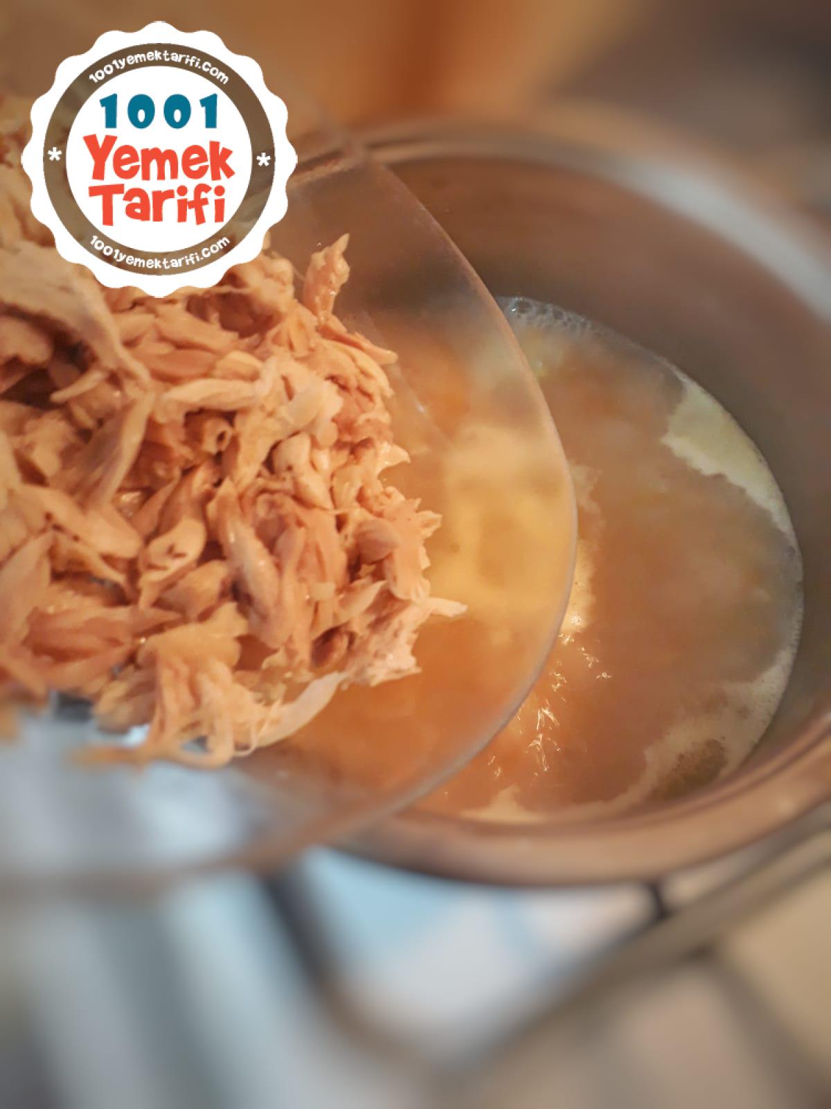 - Sonra didiklenmiş tavuğu ekleyin bir taşım kaynatın.