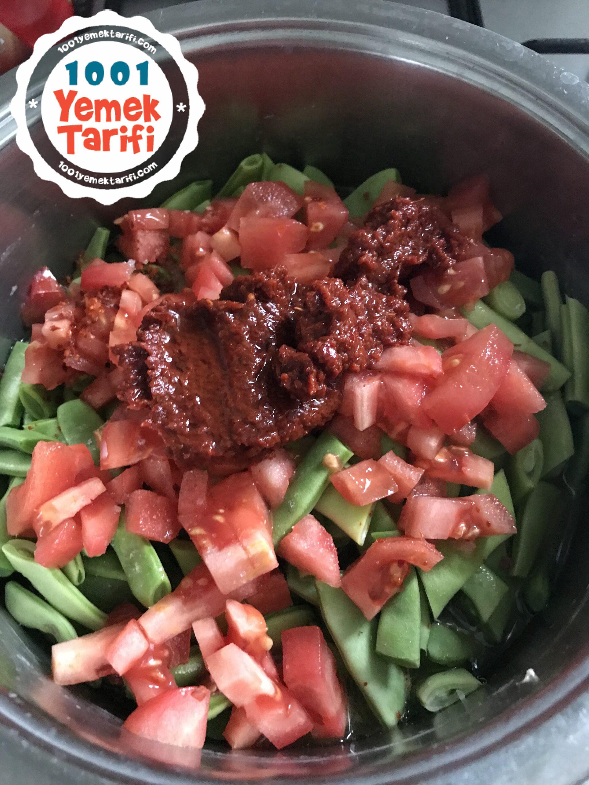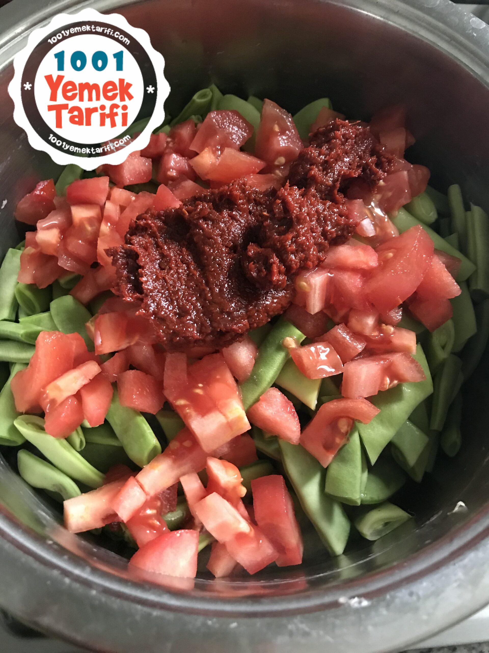 - Kesilen domatesleri ekledikten sonra isteğe bağlı salçayı ekleyebilirsiniz.