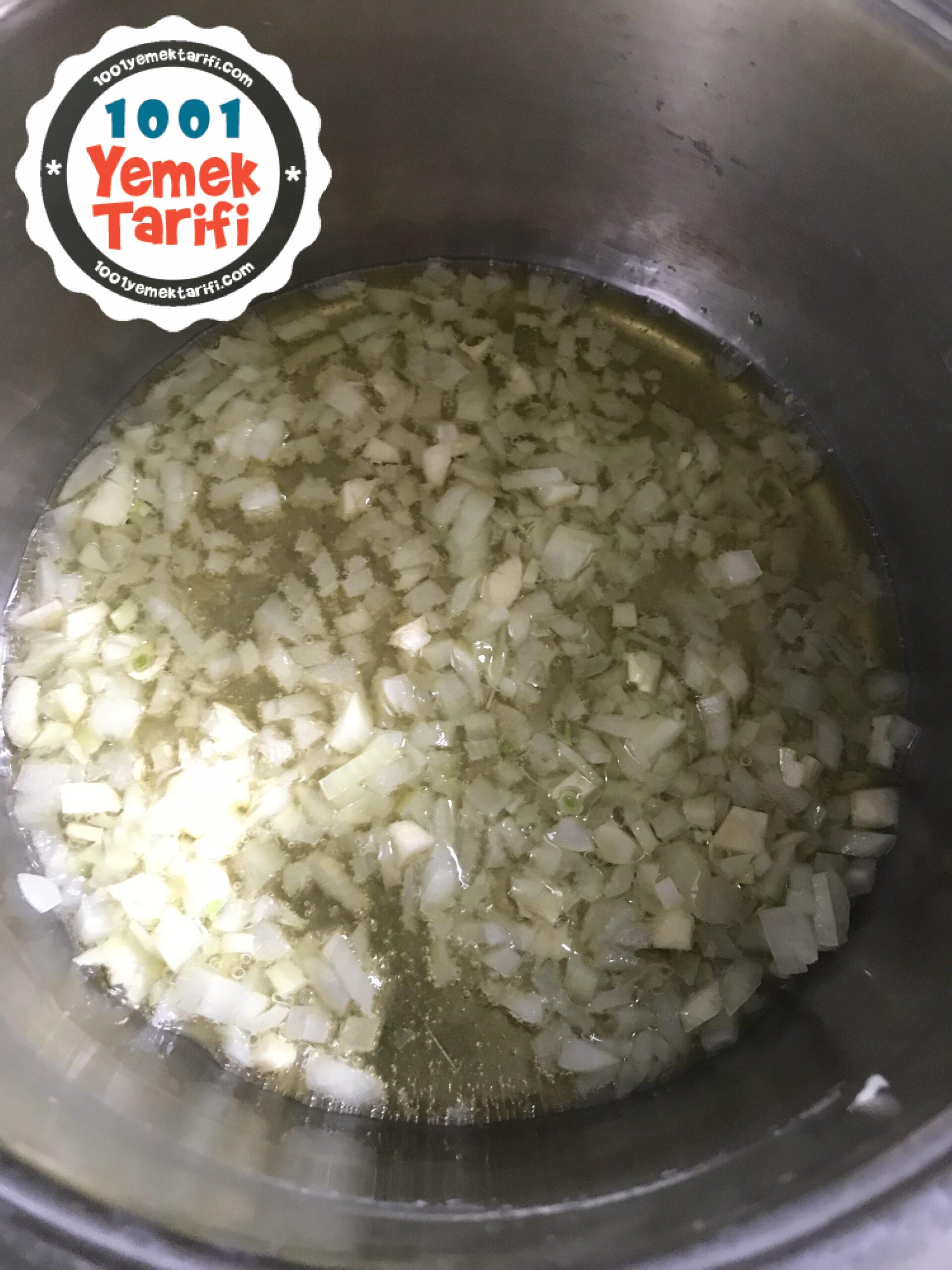 - Zeytinyağını tencereye döktükten sonra soğan ve sarımsakları ekleyin.